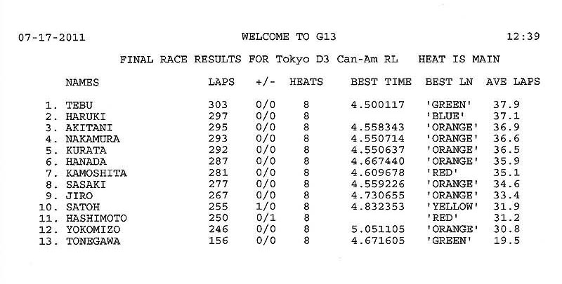 2011 5th RACE 7/17(Sun) Can-Am 13 ENTRIES F-1 9 ENTRIES