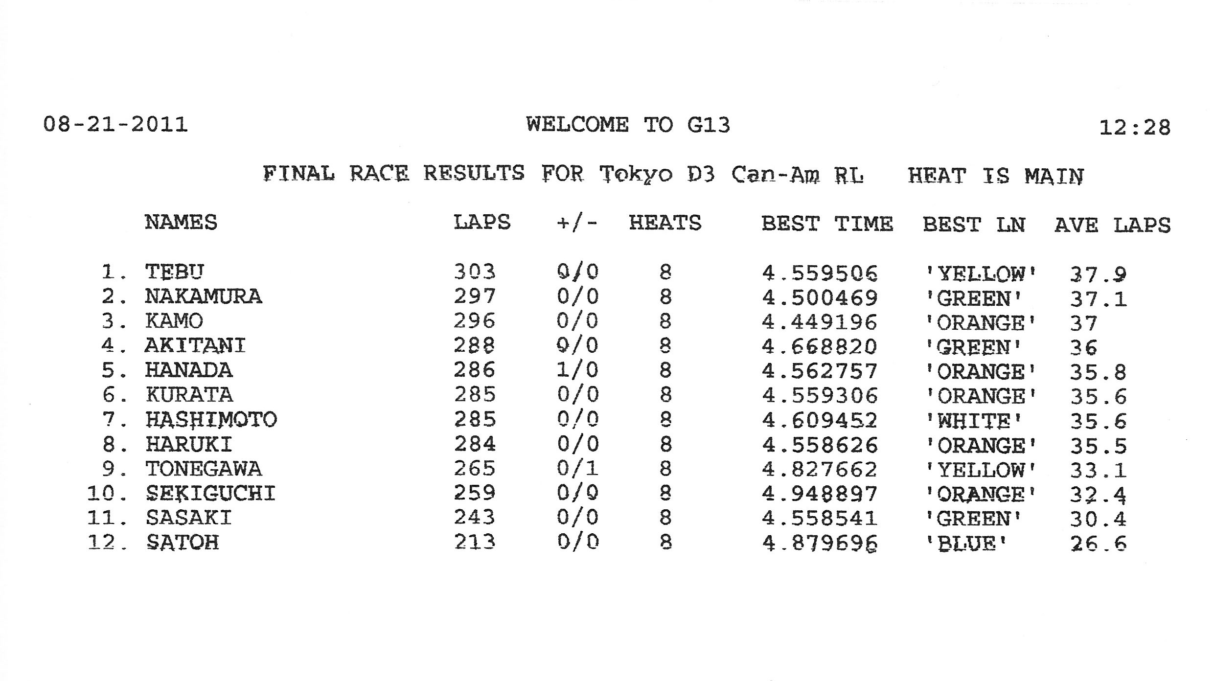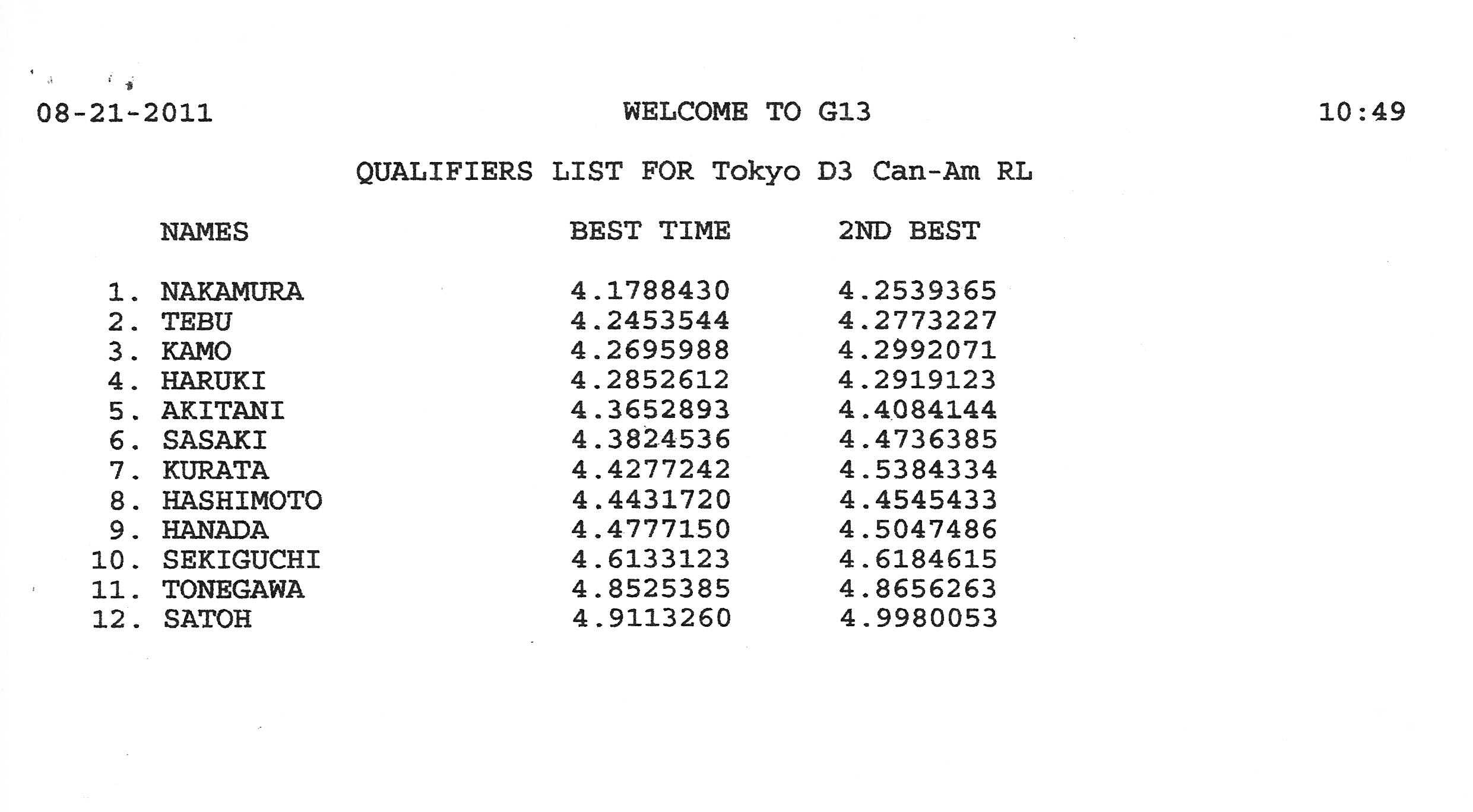 2011 6th RACE 8/21(SUn) Can-Am 12 ENTRIES F-1 11 ENTRIES