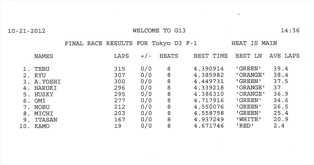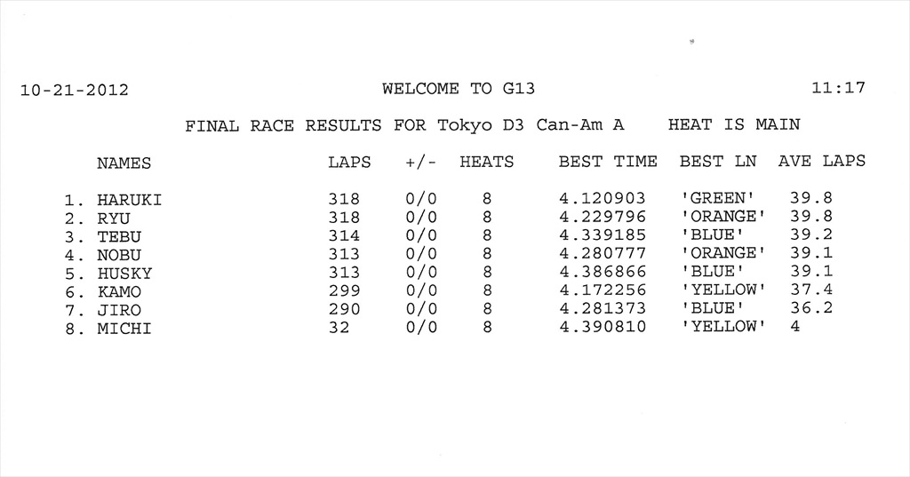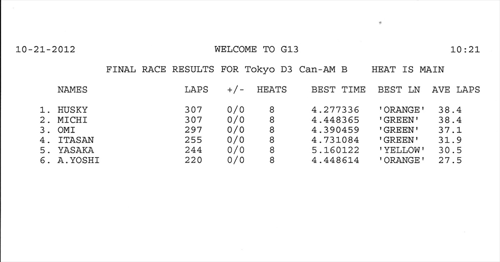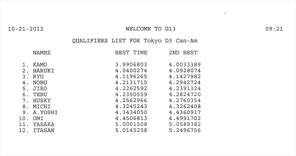 2012 10th RACE 10/21(Sun) Can-Am 12 ENTRIES F-1 10 ENTRIES