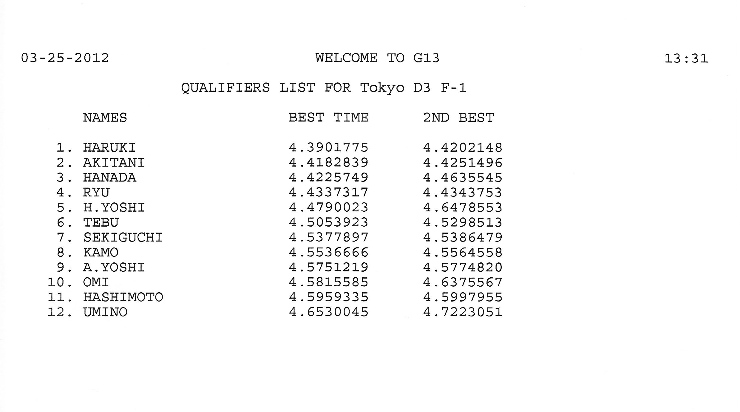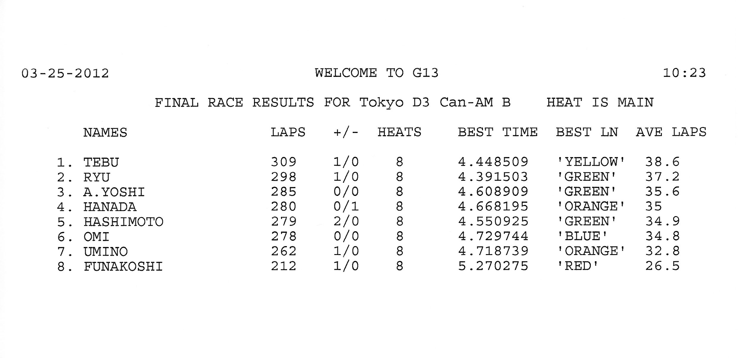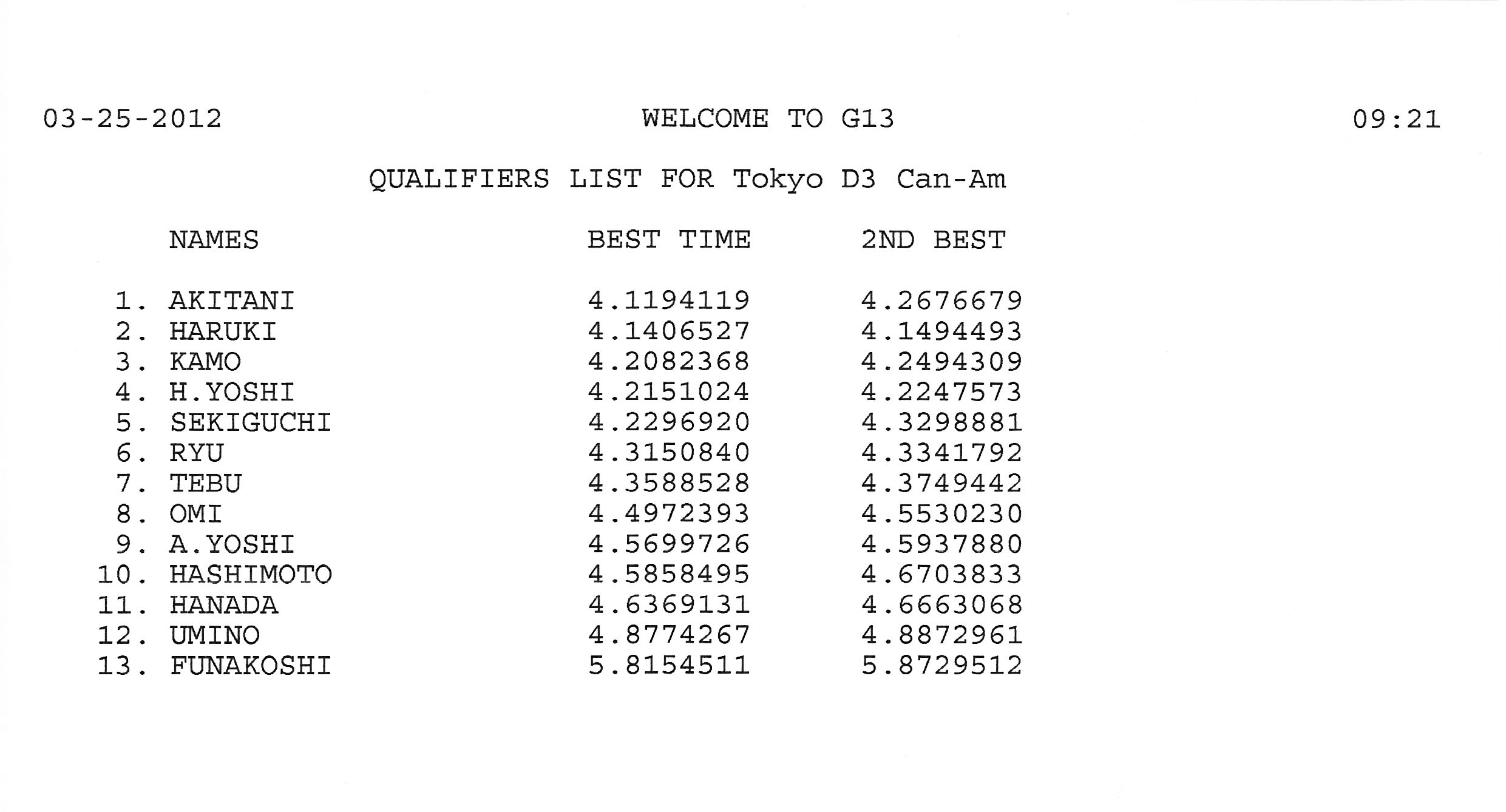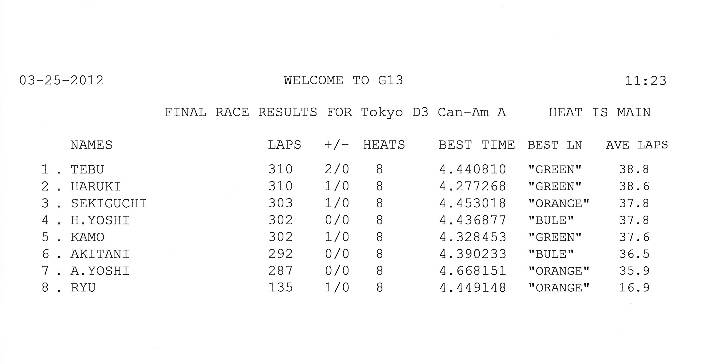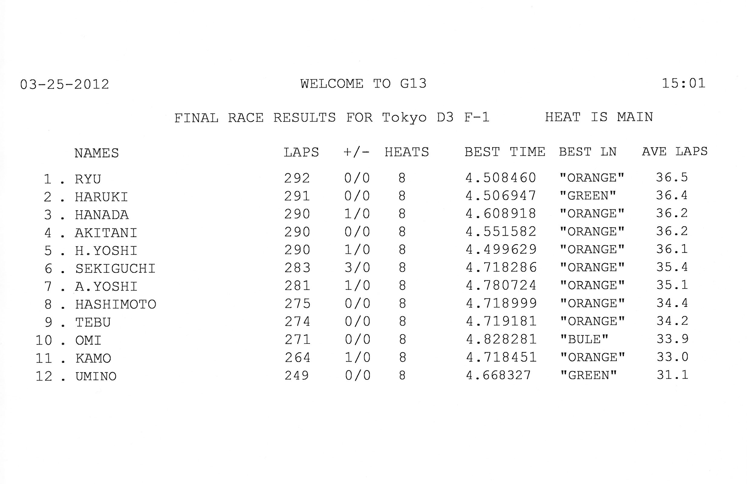 2012 3rd RACE 3/25(Sun) Can-Am 13 ENTRIES F-1 12 ENTRIES