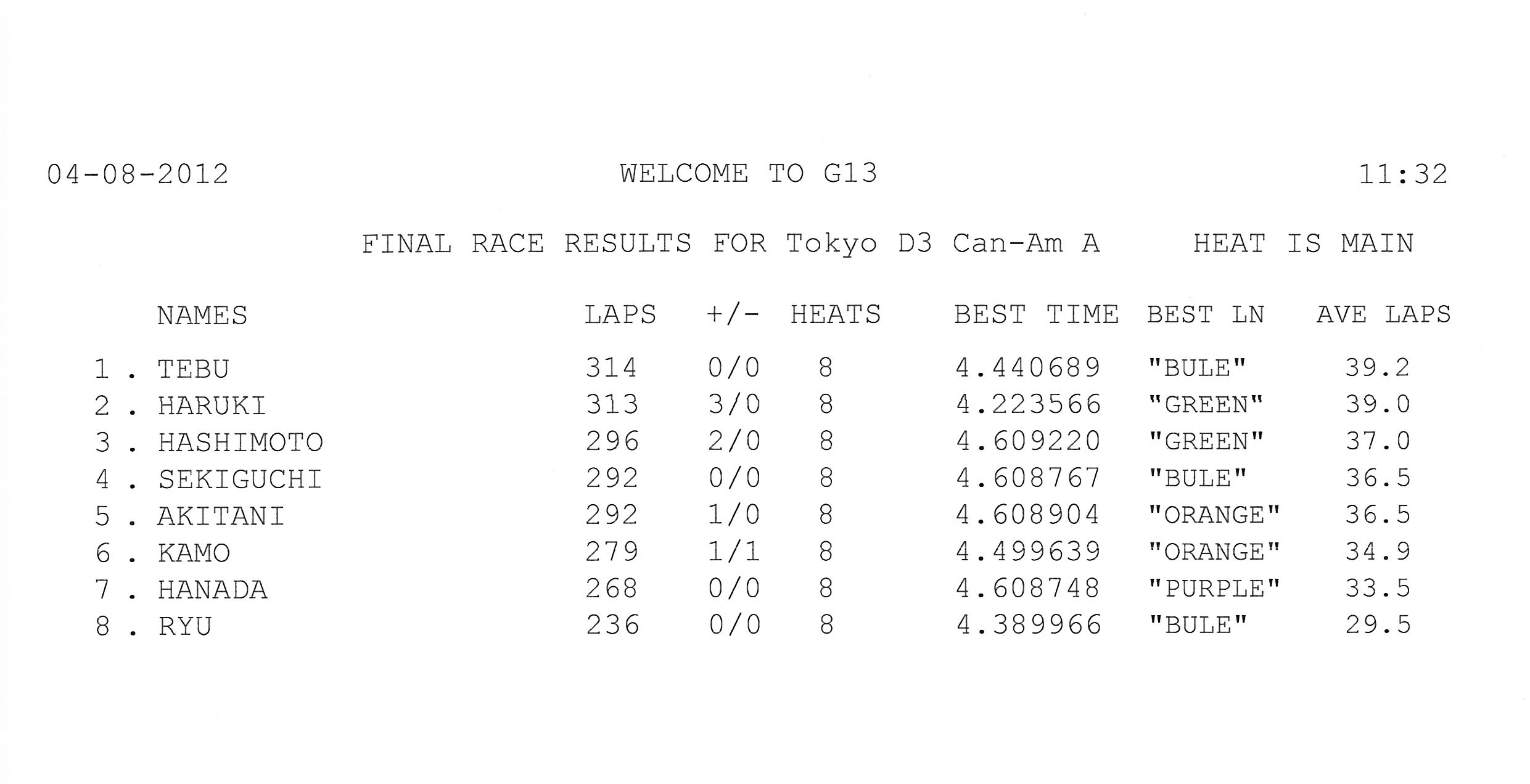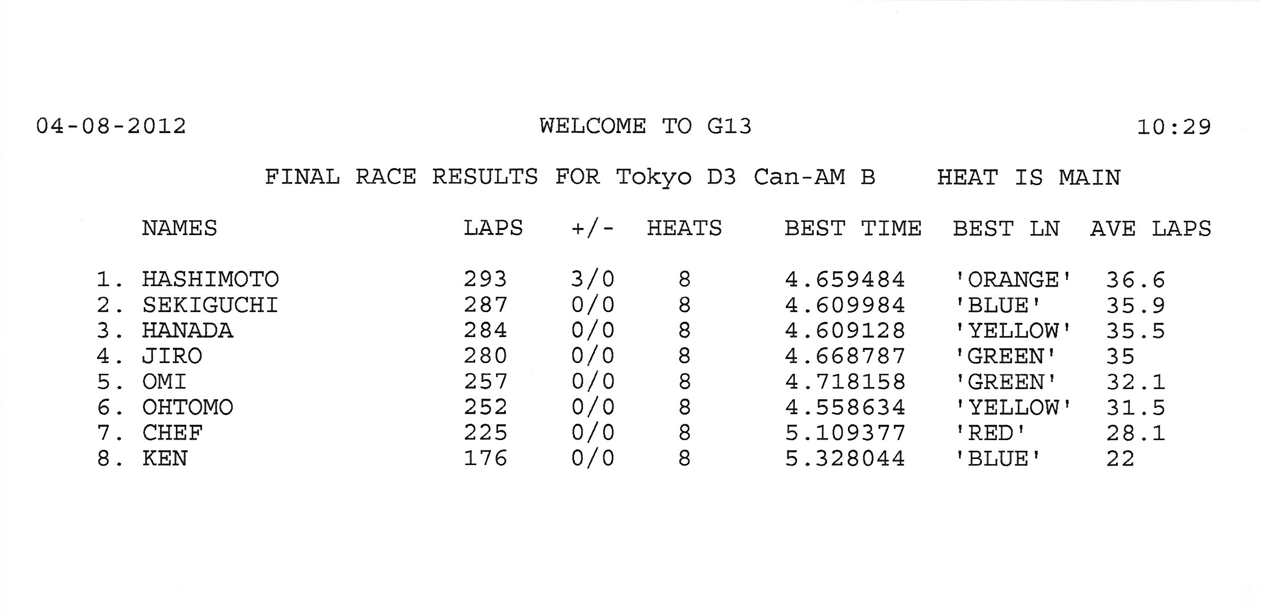 2012 4th RACE 4/8(Sun) Can-Am 13 ENTRIES F-1 10 ENTRIES