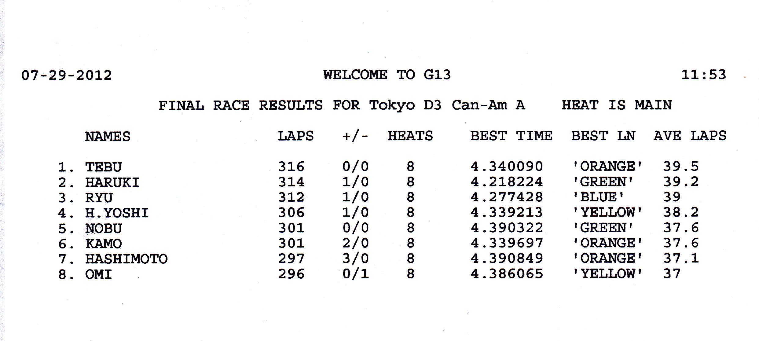 2012 7th RACE 7/29(Sun) Can-Am 14 ENTRIES F-1 12 ENTRIES