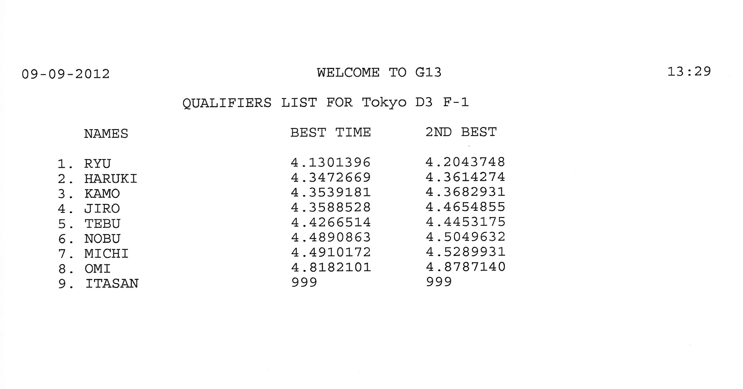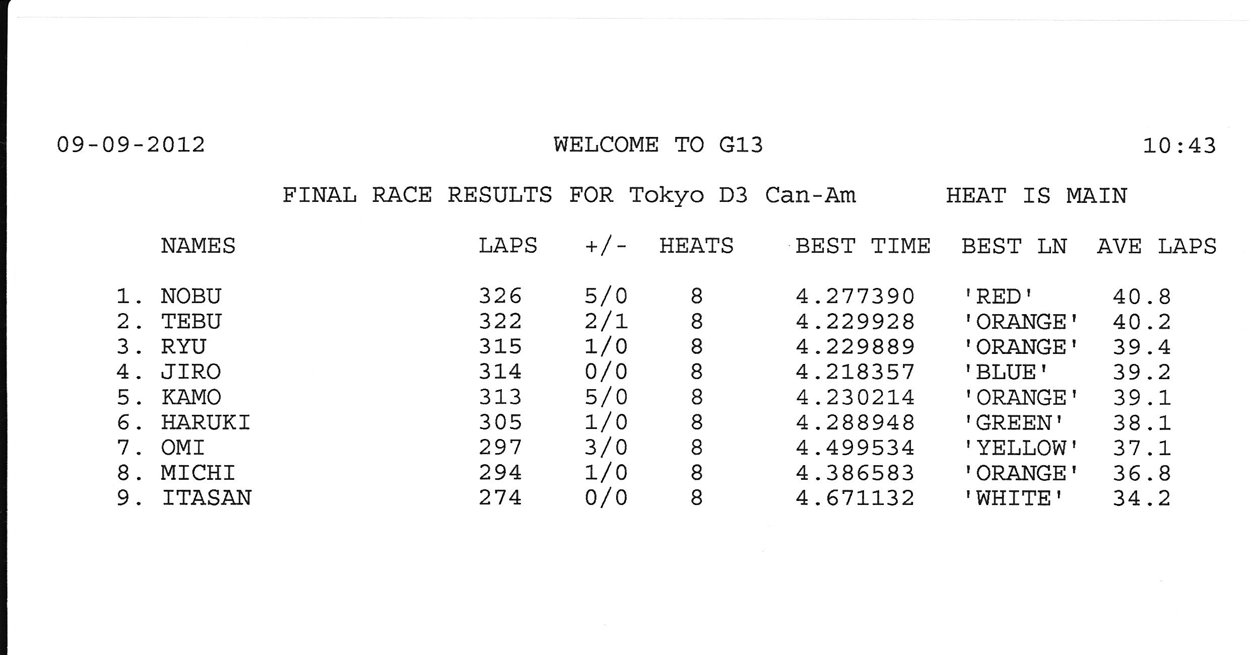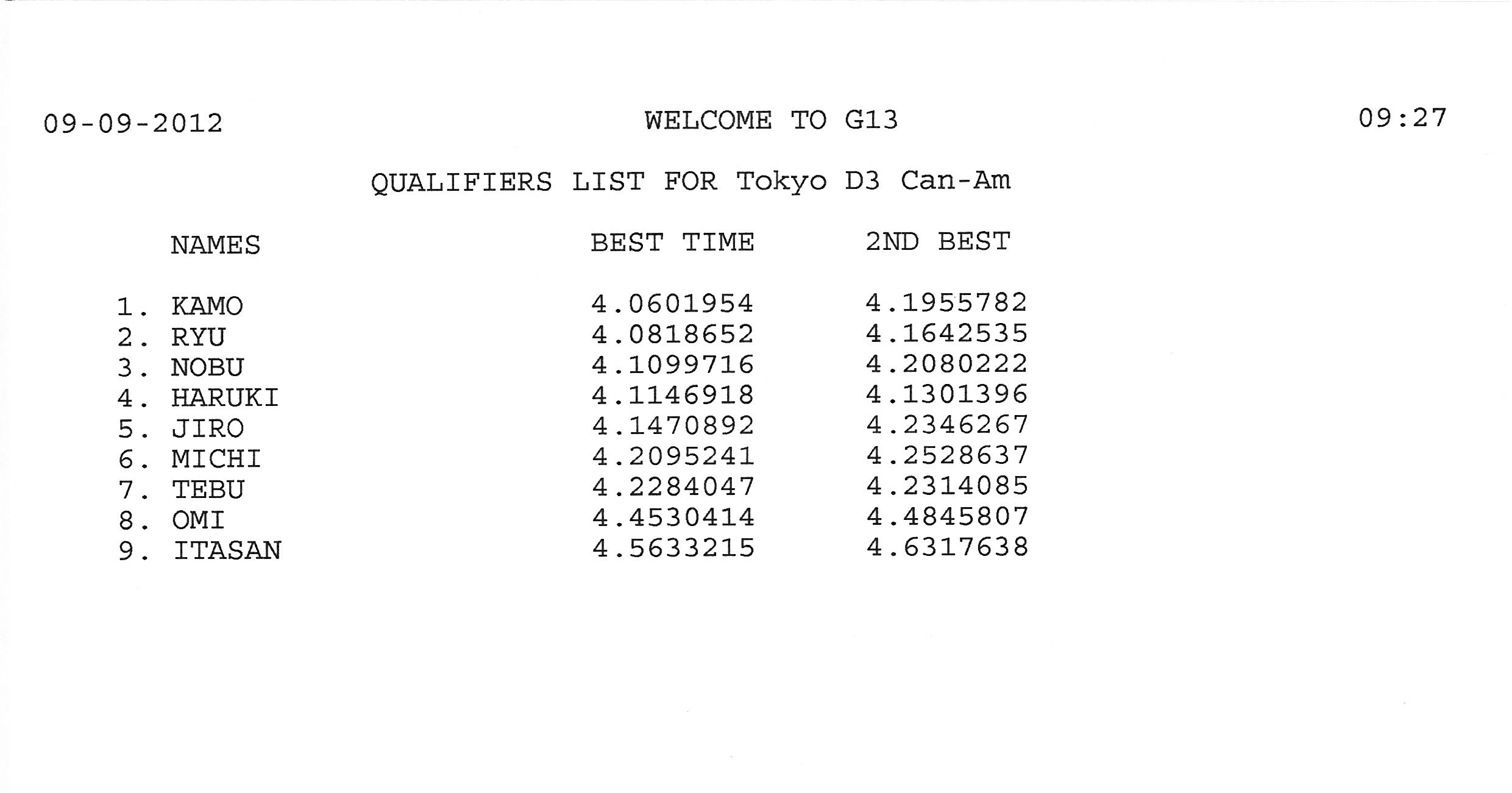 2012 9th RACE 9/9(Sun) Can-Am 9 ENTRIES F-1 9 ENTRIES