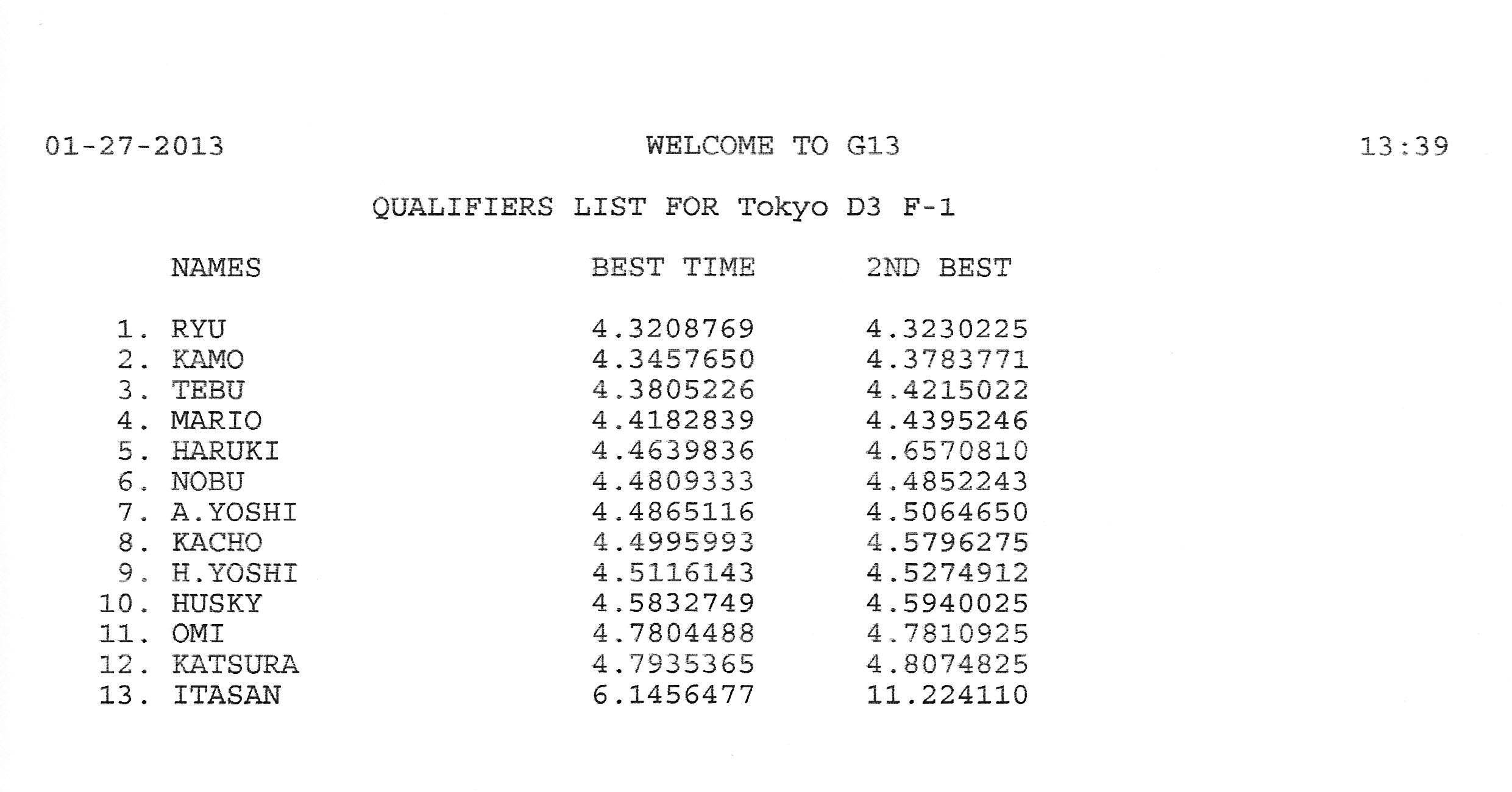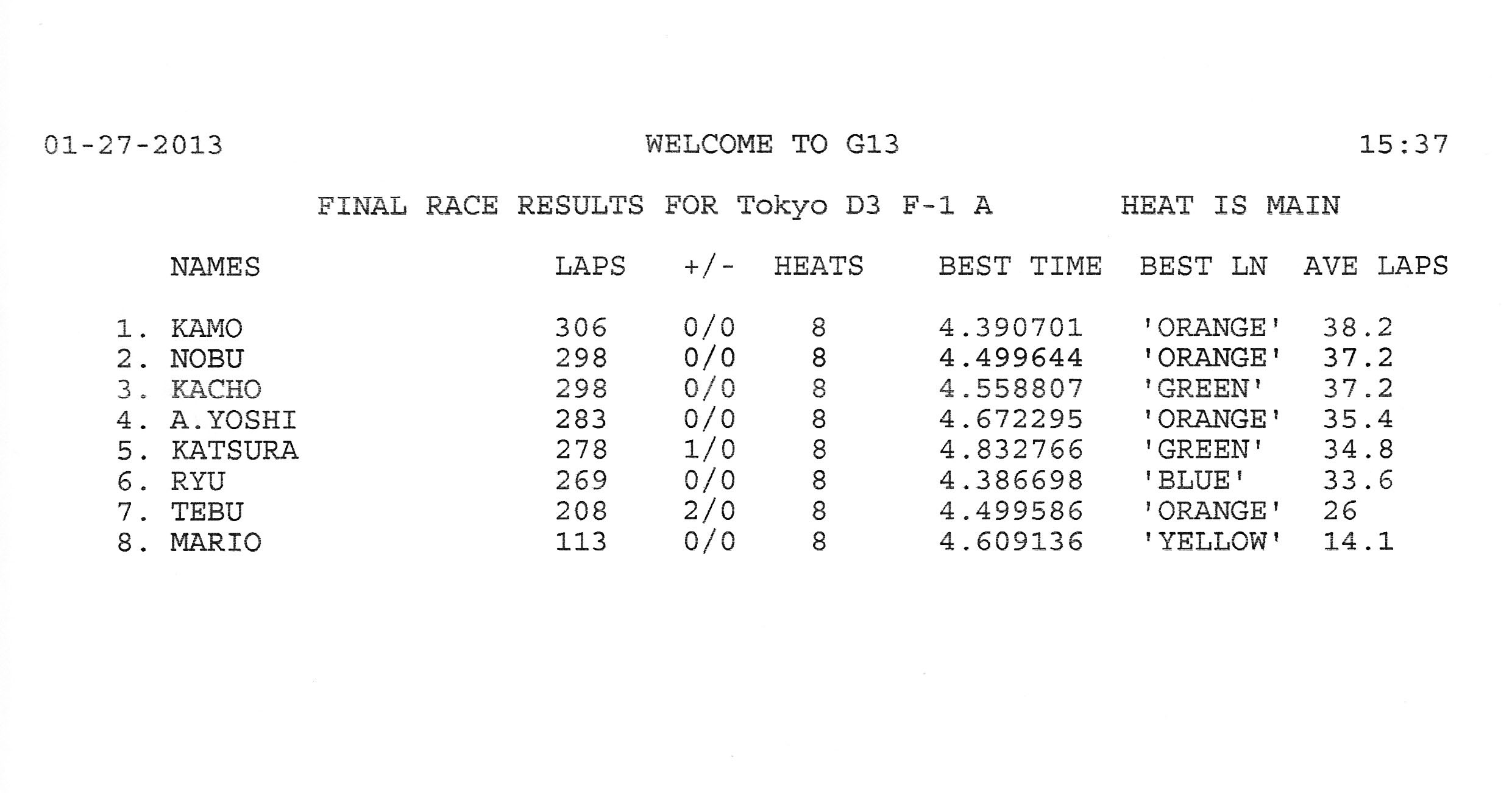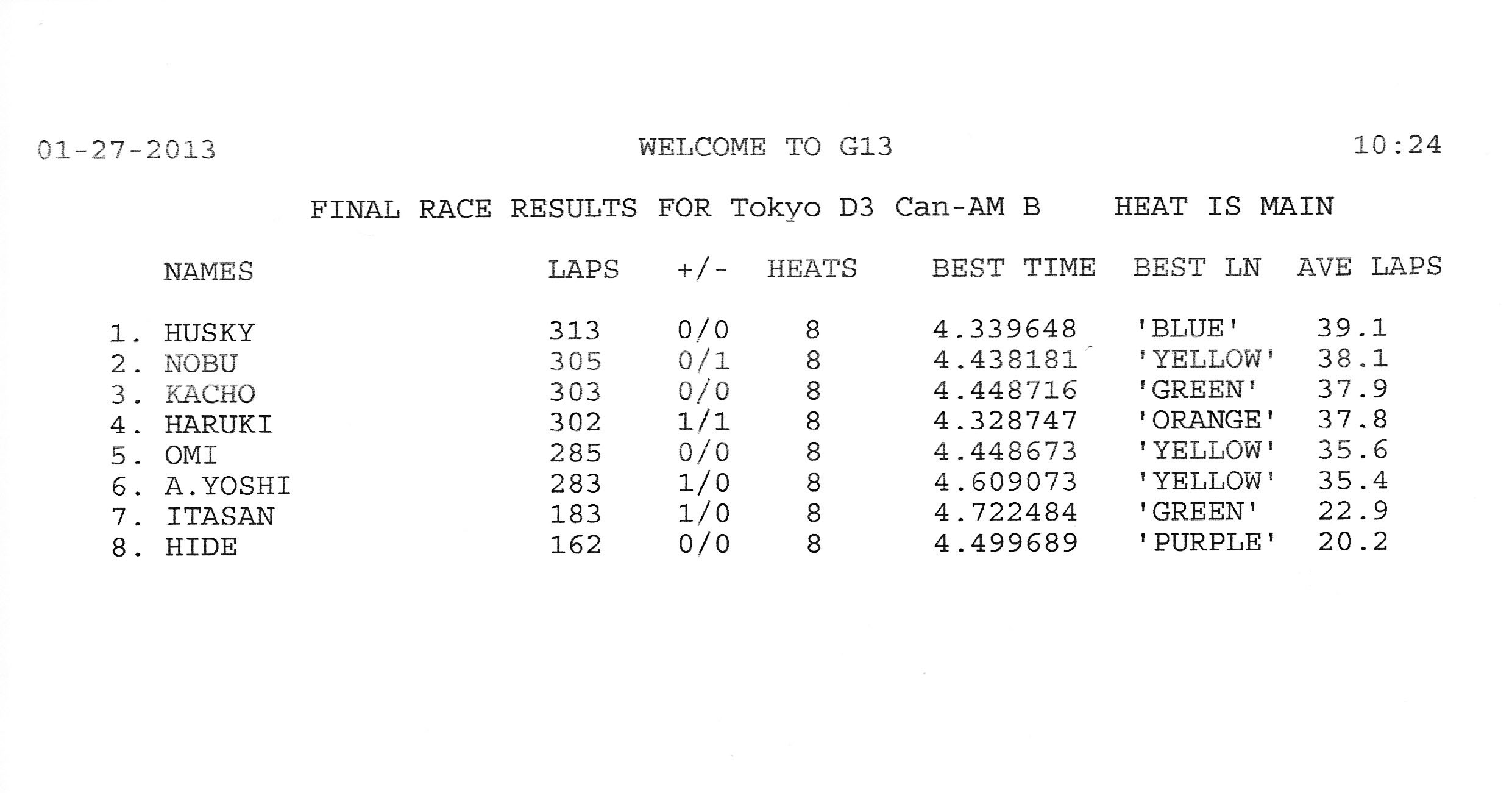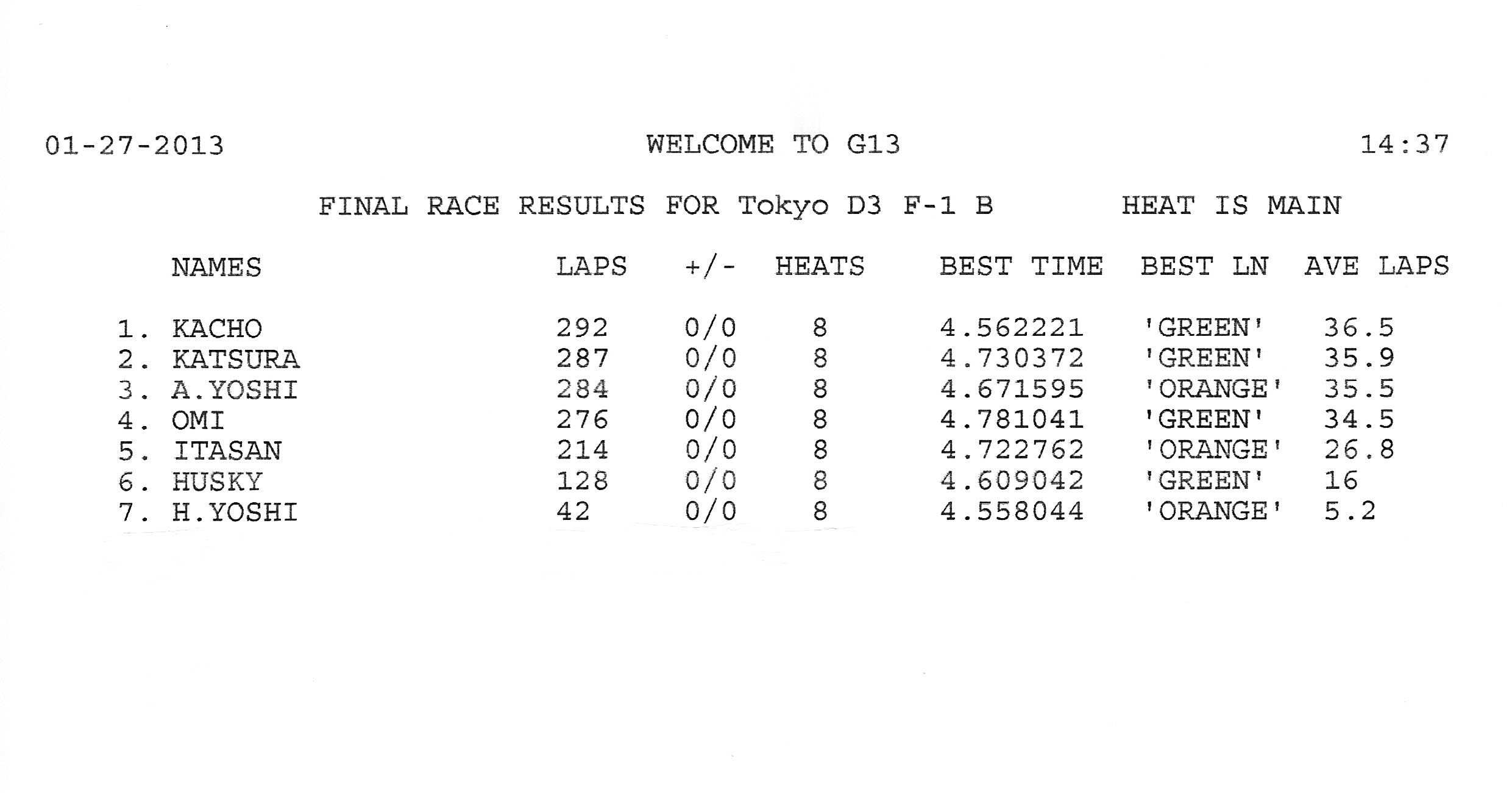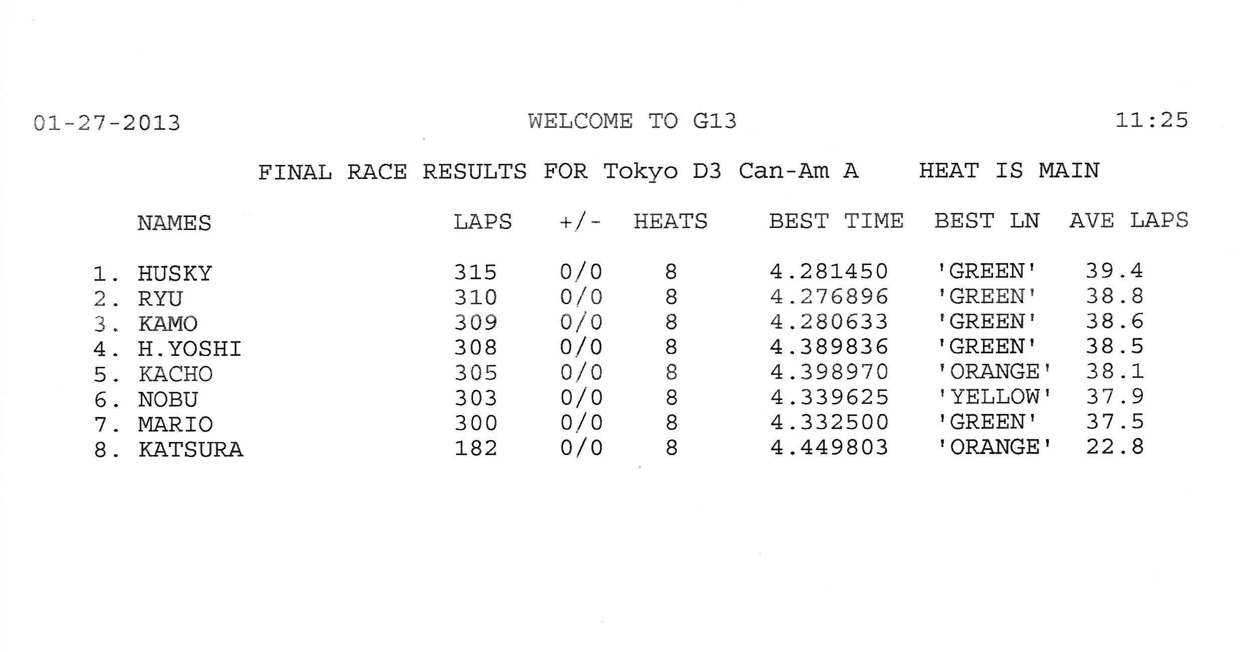 2013 1nd RACE 1/27(Sun) Can-Am 13 ENTRIES F-1 13 ENTRIES