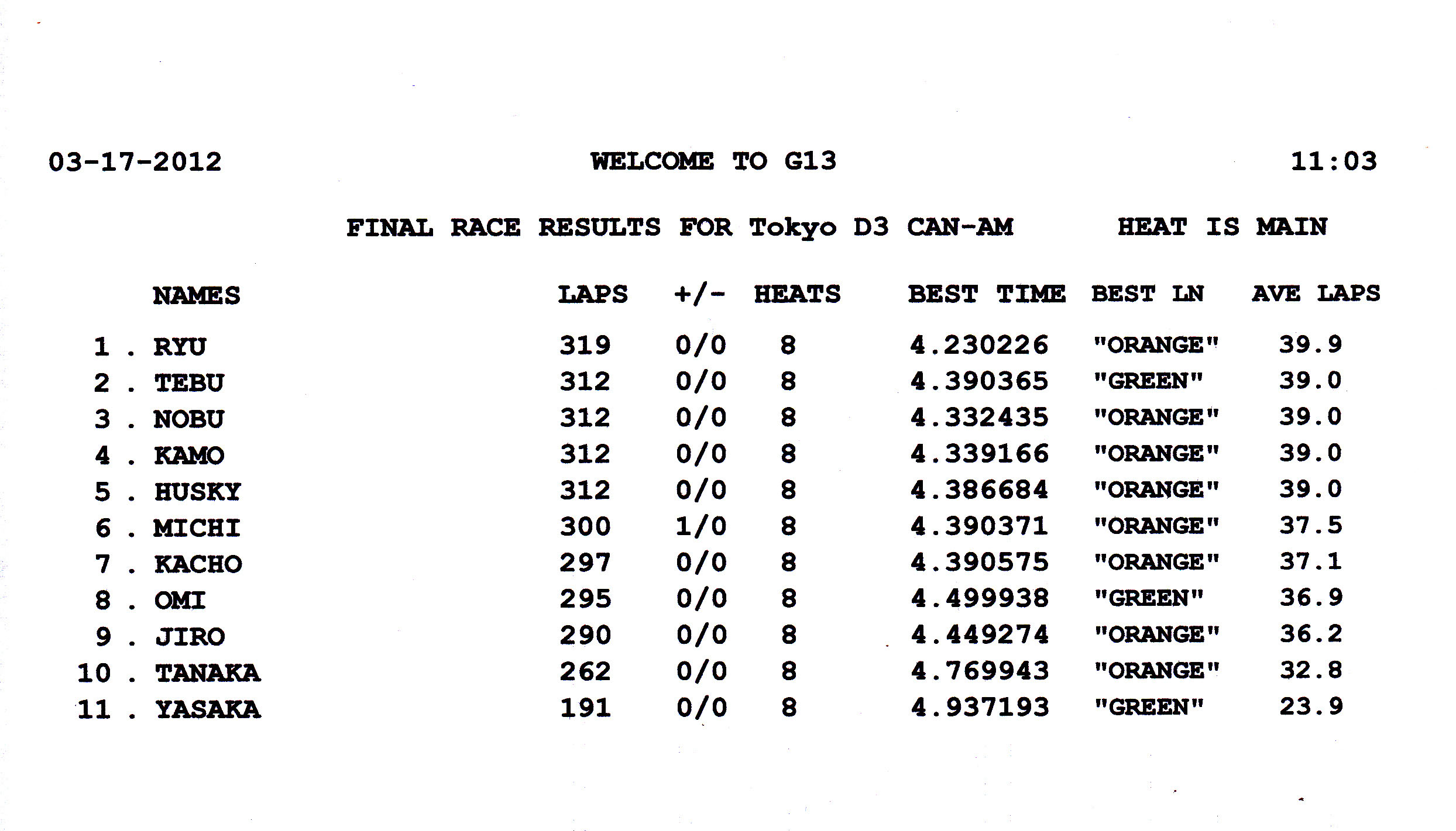 2013 3nd RACE 3/17(Sun) Can-Am 11 ENTRIES F-1 9 ENTRIES