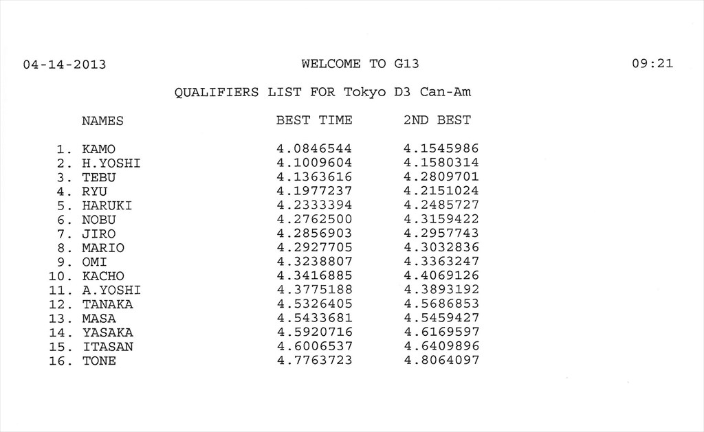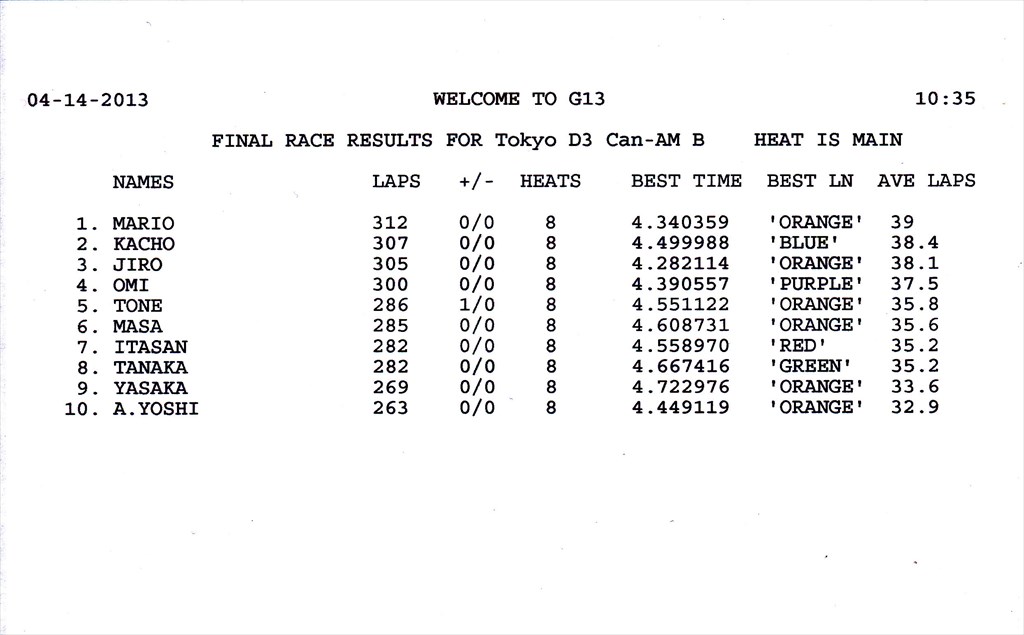 2013 4th RACE 4/14(Sun) Can-Am 16 ENTRIES F-1 11 ENTRIES