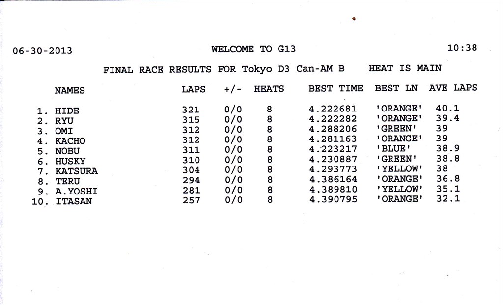 2013 6th RACE 6/30(Sun) Can-Am 15 ENTRIES F-1 14 ENTRIES