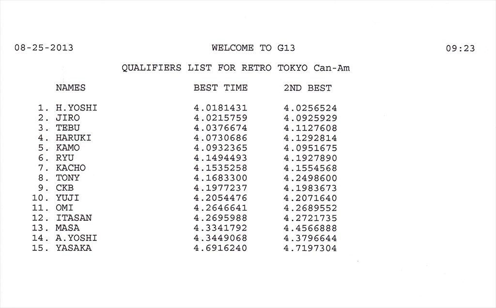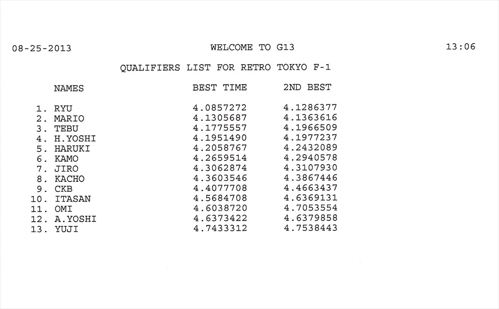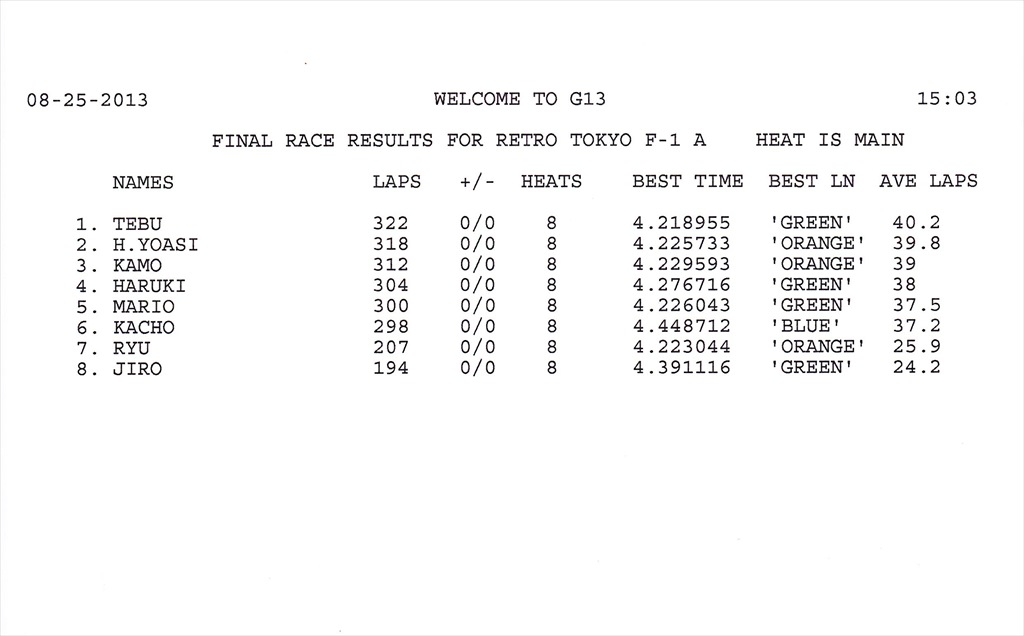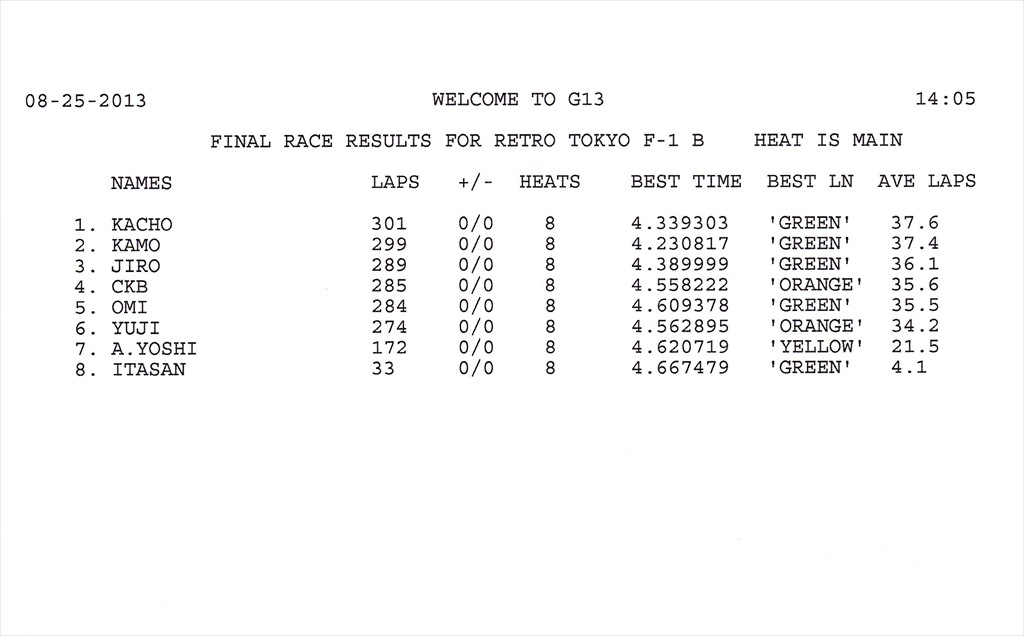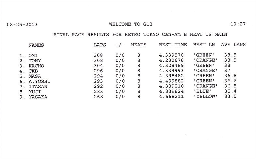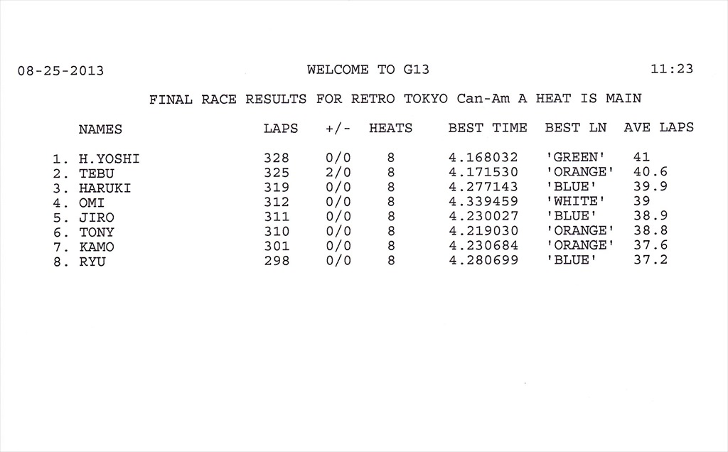 2013 8th RACE 8/25(Sun) Can-Am 15 ENTRIES F-1 13 ENTRIES