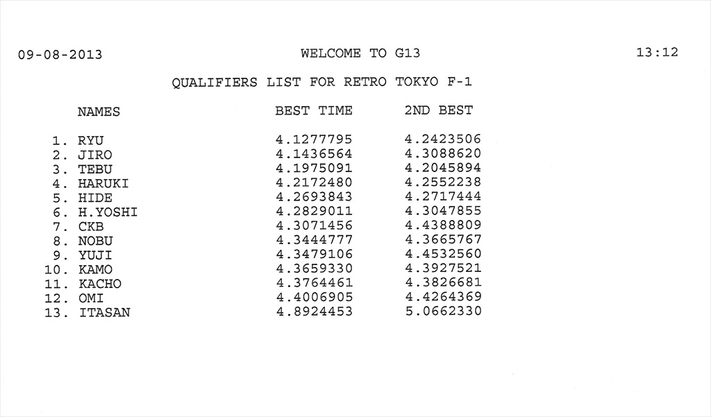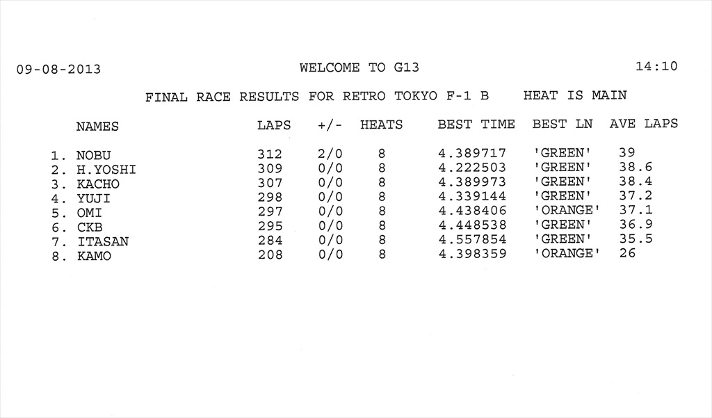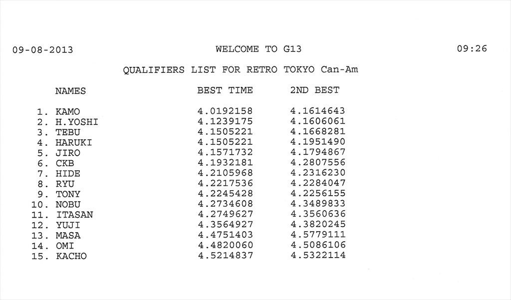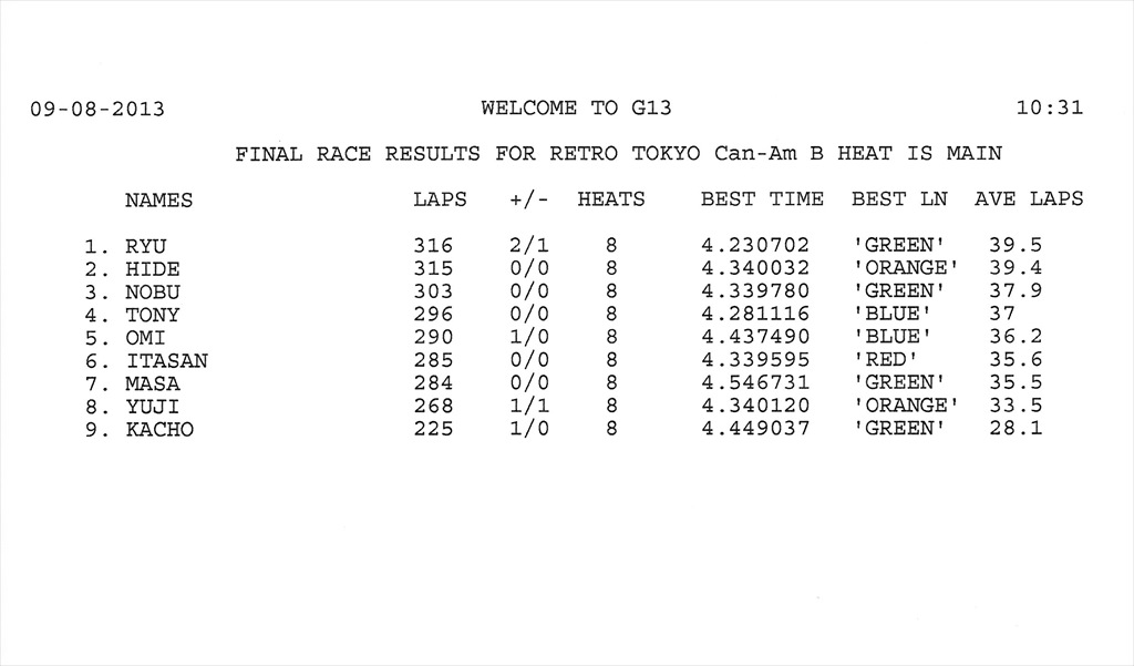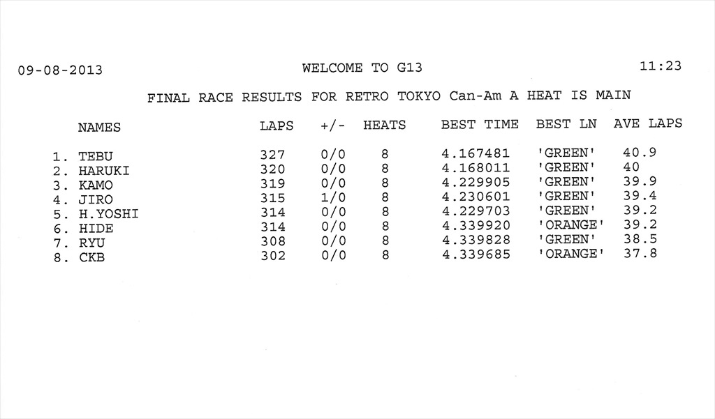 2013 9th RACE 9/8(Sun) Can-Am 15 ENTRIES F-1 13 ENTRIES